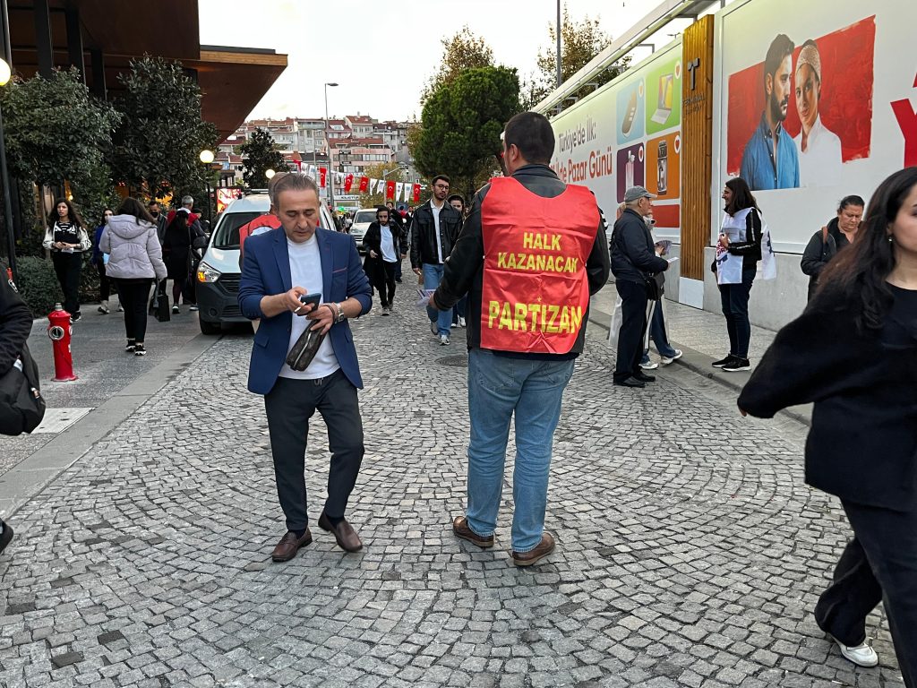 İSTANBUL- İşçi Emekçi Birliği, emperyalist savaşa, kapitalist sömürüye ve yağmaya karşı 2 Kasım Pazar günü Kadıköy İskele Meydanı’nda yapılacak “İşçi Emekçi Buluşması” için çağrısını sürdürüyor. Bileşenlerinden biri olan Partizan’ın da yer aldığı birlik, bugün Kadıköy Söğütlüçeşme’de bildiri dağıtarak buluşmaya katılım çağrısı yaptı.